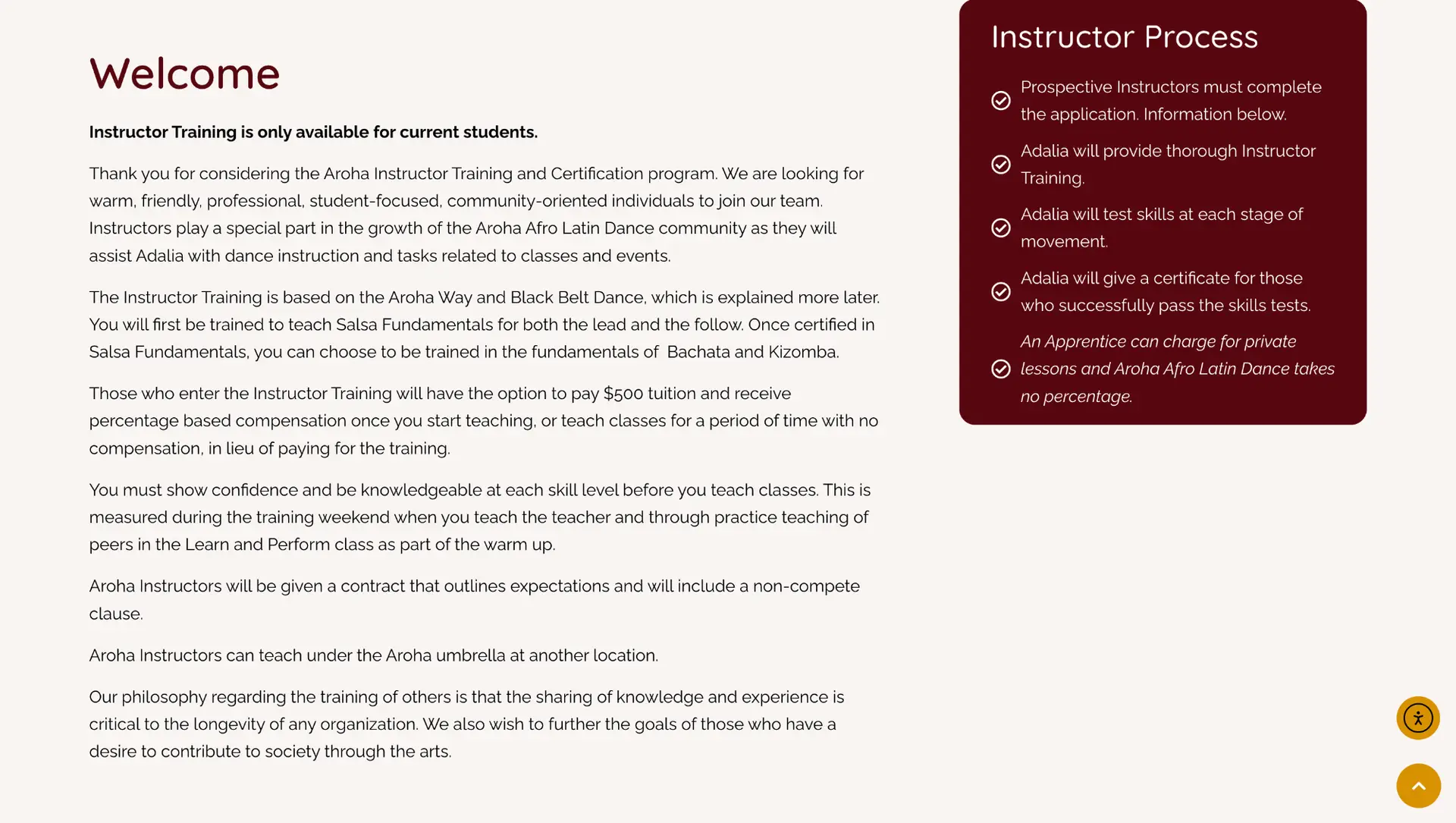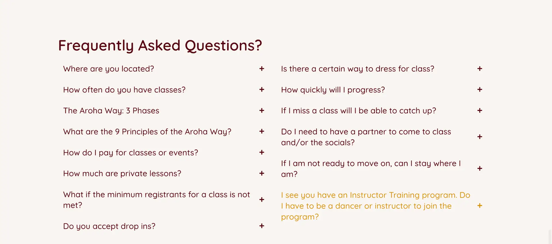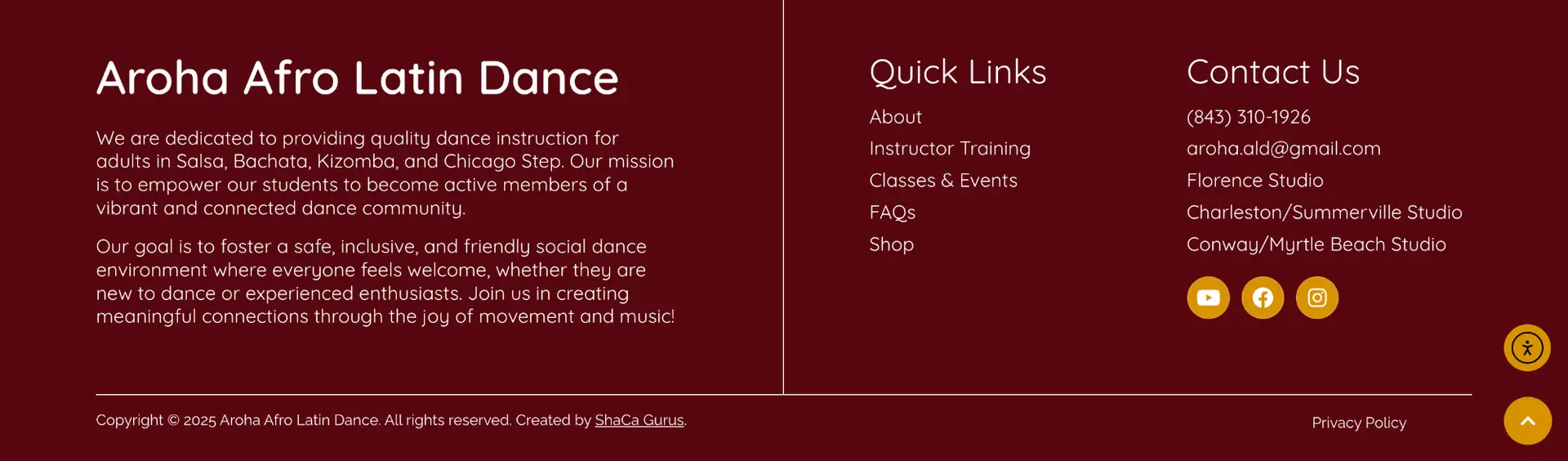 Leveraging the flexibility of WordPress, we developed a mobile-responsive site featuring an intuitive navigation structure that categorizes dance programs into clear, actionable learning phases. The solution integrates location-specific landing pages and a simplified e-commerce checkout to reduce friction for new student registrations and event bookings.
