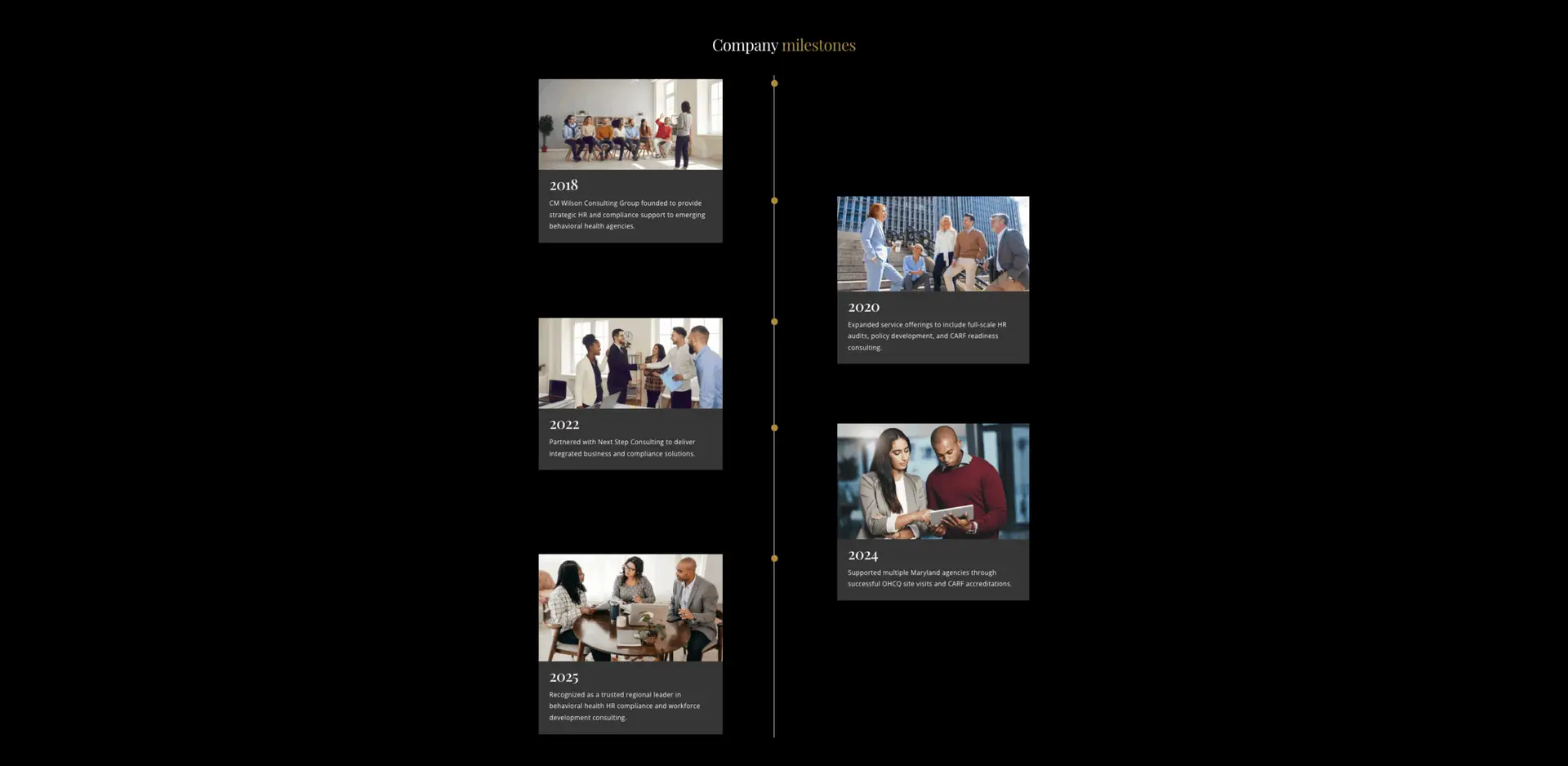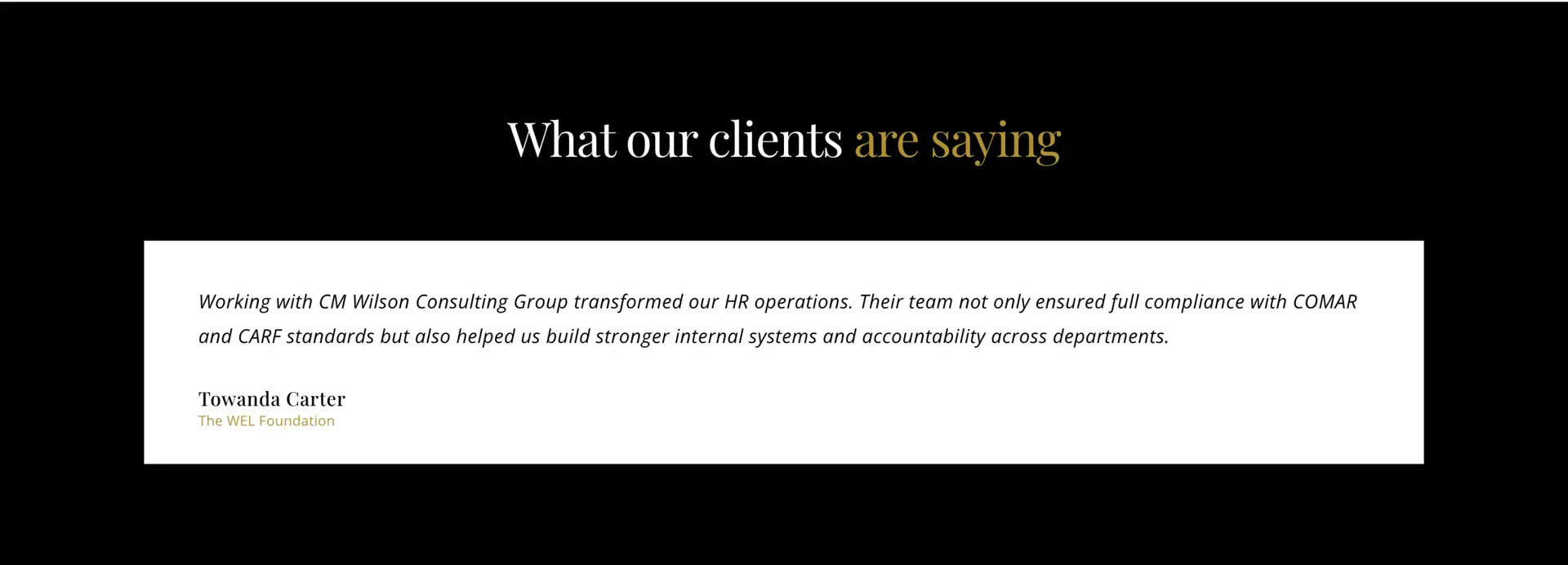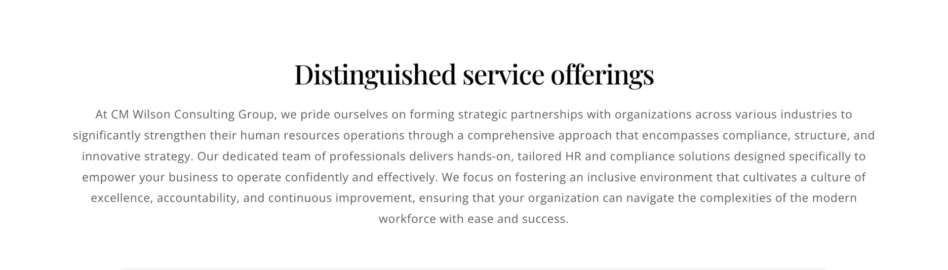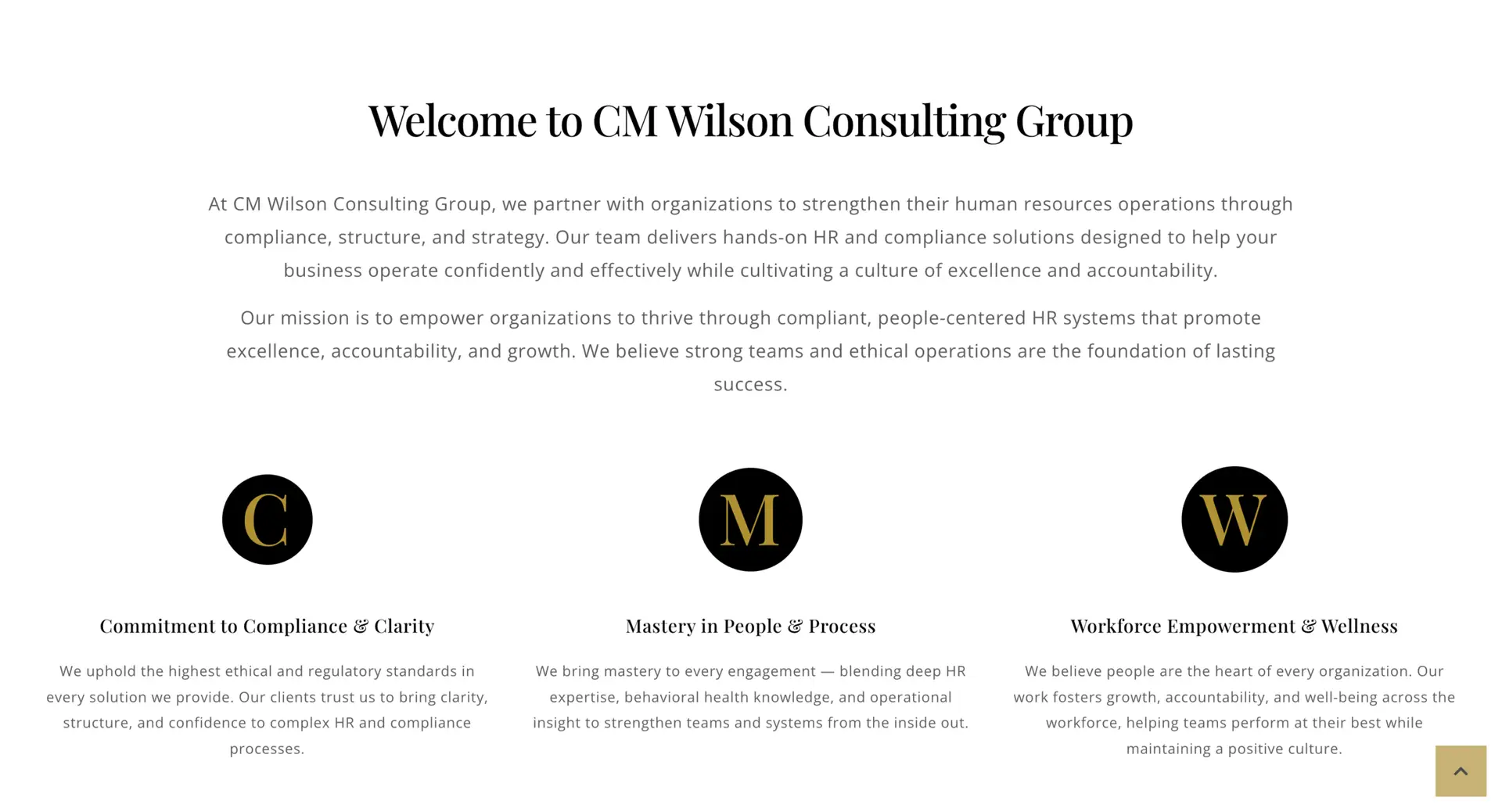 CM WIlson Consulting Group now has a streamlined, on-brand site that’s simple to update as they grow. The template foundation keeps things efficient while still giving clients and visitors a clear path to clearly present who they are and what they offer.