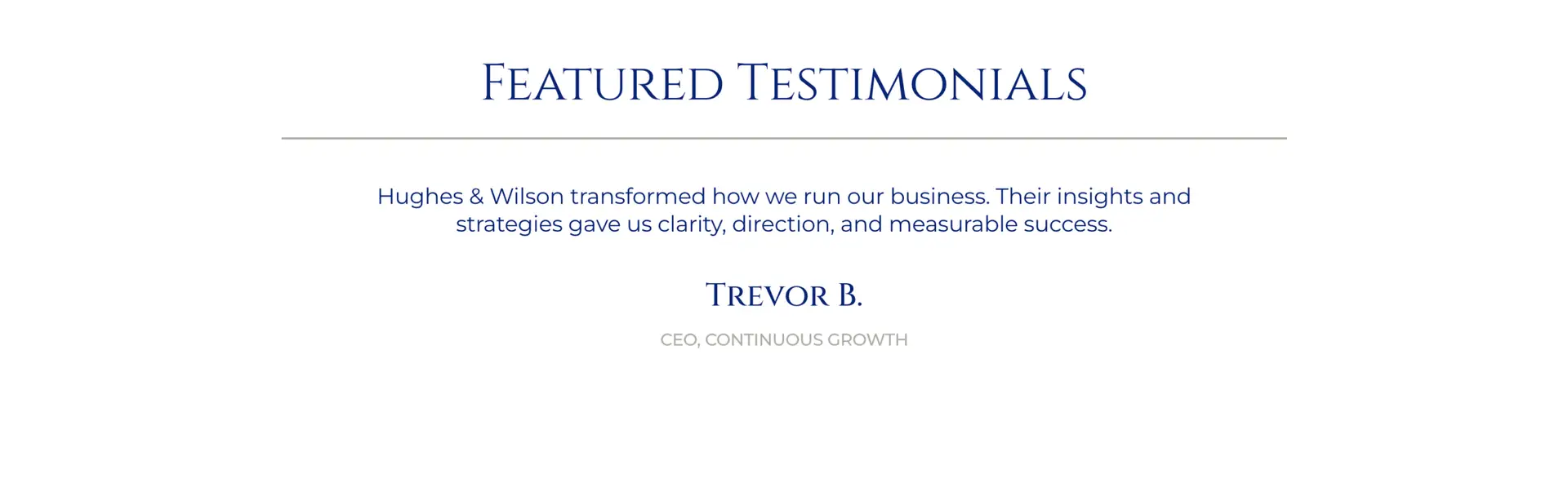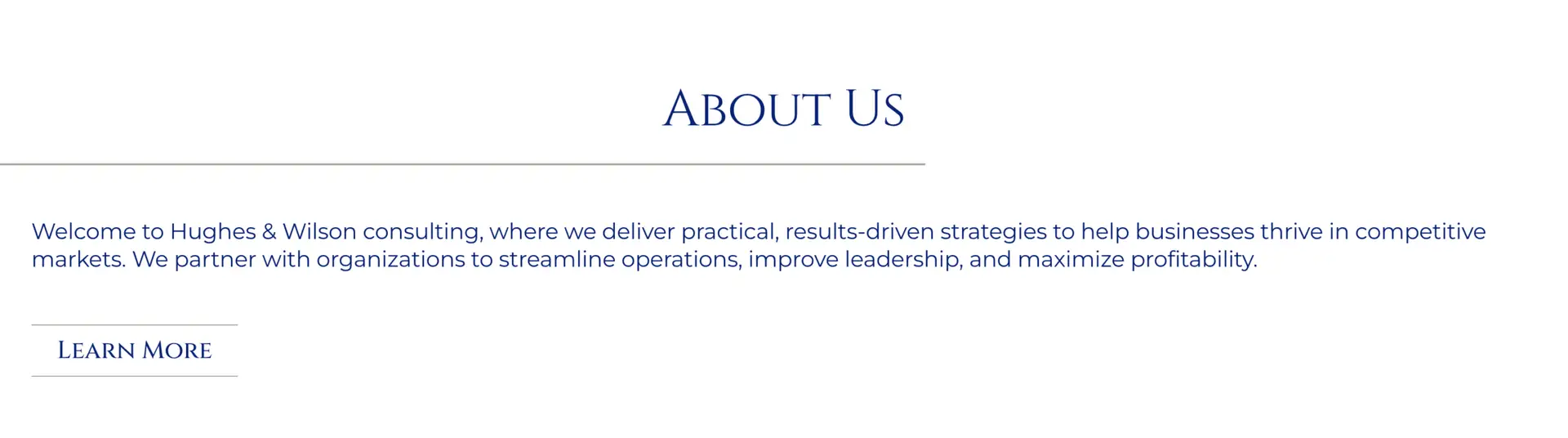 Hughes & Wilson Consulting Firm wanted a templated site that didn’t feel generic. The aim was to start from a proven layout but tailor it to their brand so clients and visitors could quickly see who they are and clearly present who they are and what they offer.